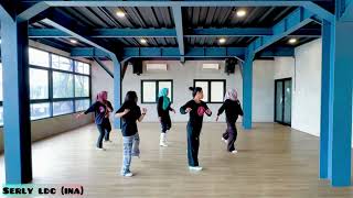 [17 – 24] Sweep 3/8 L, R samba step, walk LR, ¼ L kick, cross over