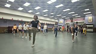 [1-8] Press R Forward, Recover, Coaster Cross, Side, Drag/Close, Crossing Triple