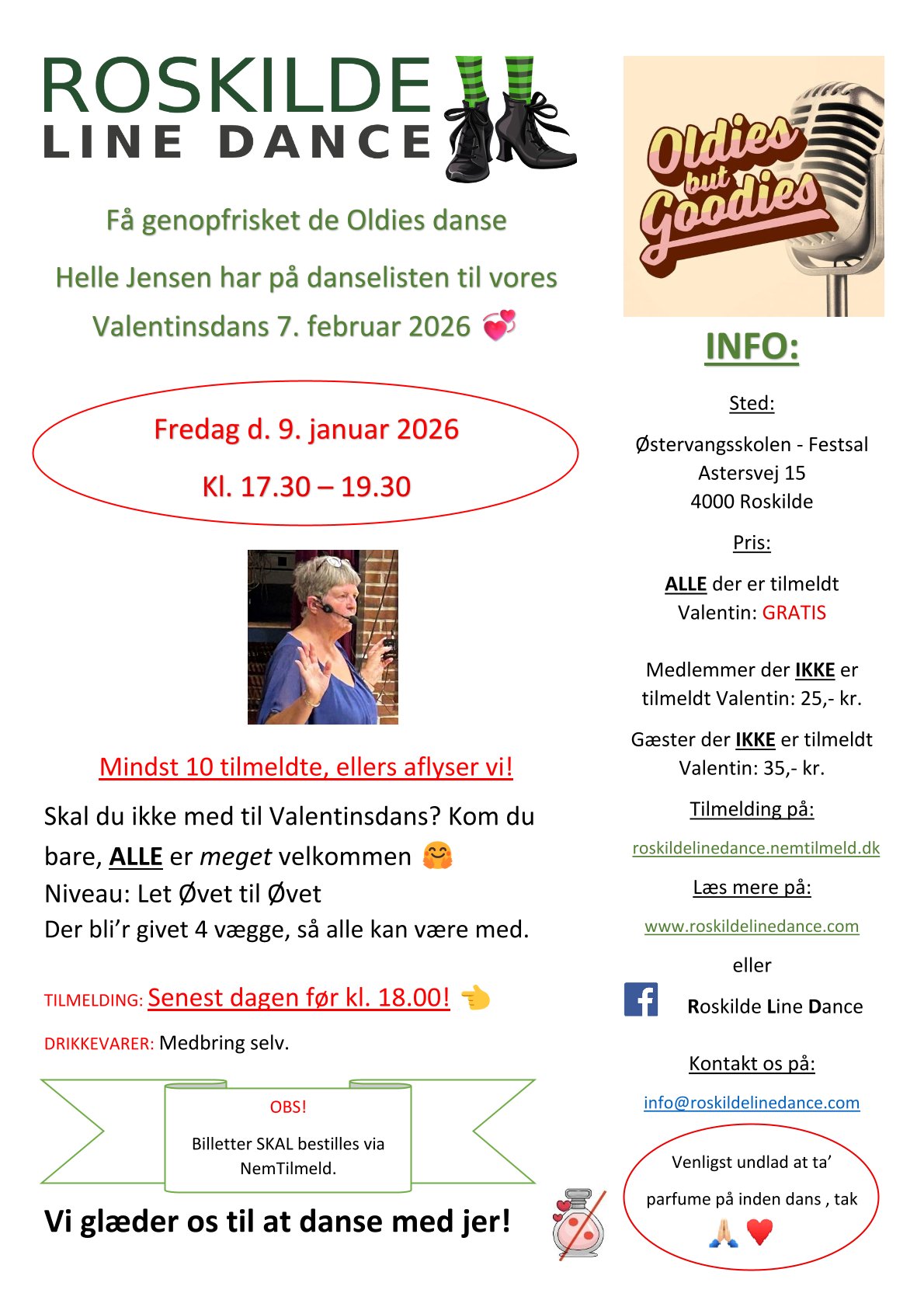 Få genopfrisket de Oldies danse Helle Jensen har på danselisten til vores Valentinsdans 7. februar 2026 Instruk... Læs mere