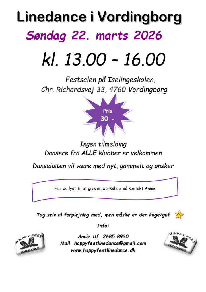 Vil du vide mere, så kontakt os eller kig dig om på hjemmesiden happyfeetlinedance.dk