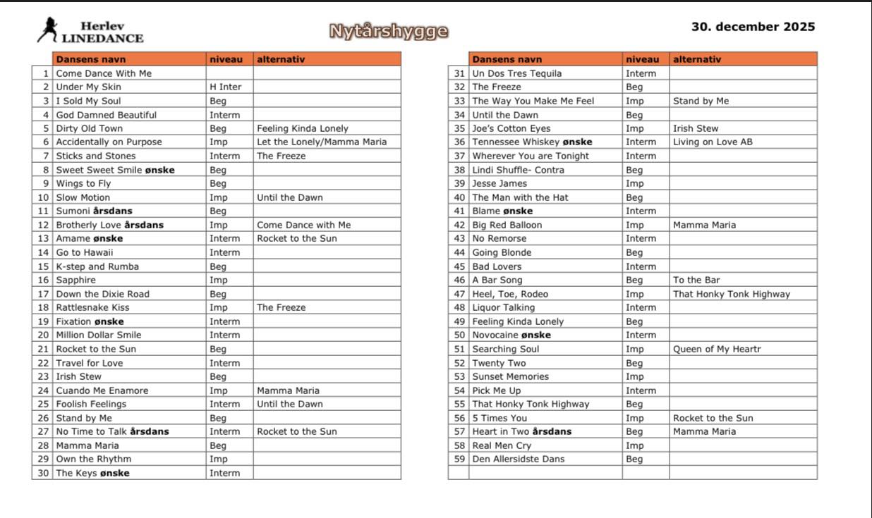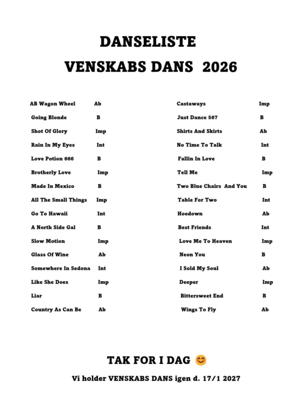 Send 2 danseønsker med når du tilmelder dig, så vil vi lave en god danseliste