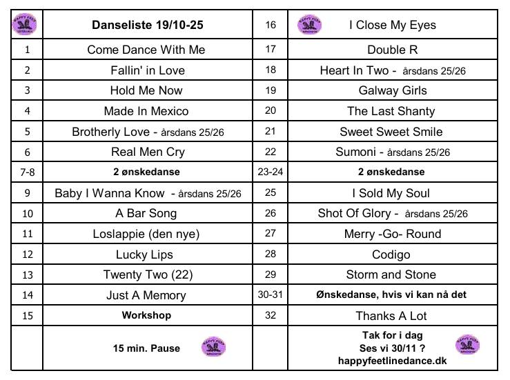 Dans efter danseliste, kom gerne med danseønsker |