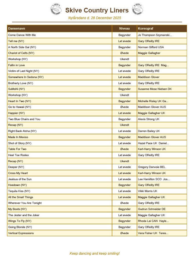 linedance nyheder, danse, arrangementer, linedance venner, din