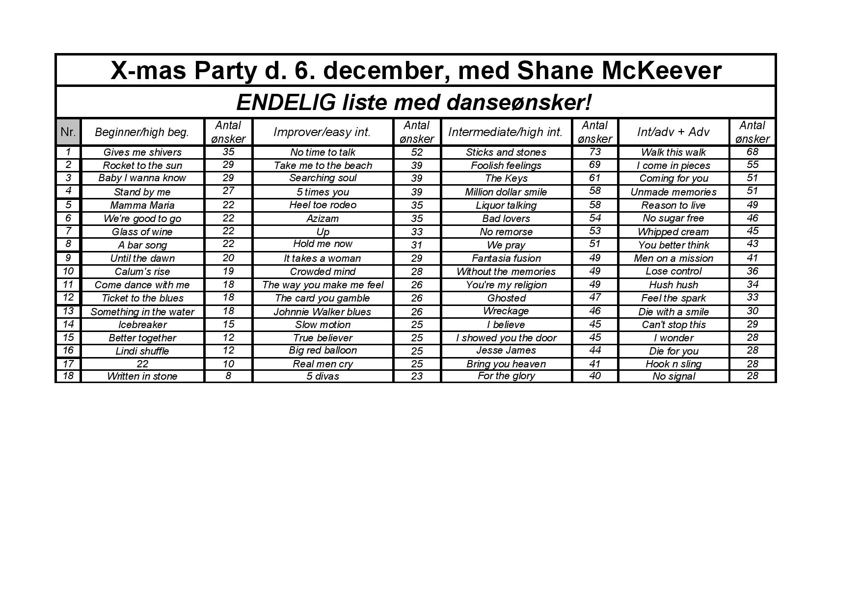 Alle niveauer og alle danse vil blive gennemgået mindst én væg.