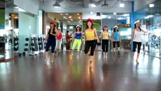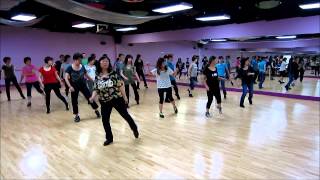 1-2Step right to right side. Touch left to left side as you angle your upper body to right diagonal & strike a pose! (optional)
