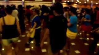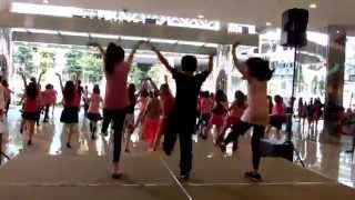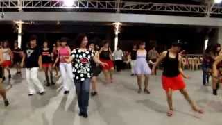 7-8stomp right beside left. Stomp right shoulder width apart from left as you kick left to left side.