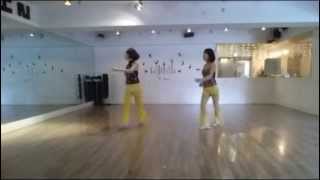 1&2Kick right to right diagonal, step right beside left, step left over right 06:00