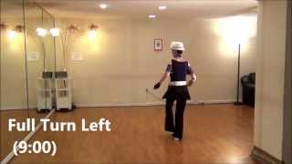 Turn ¼, Turn ¼, ½ Shuffle, Cross, Back, Back, Touch, Touch.