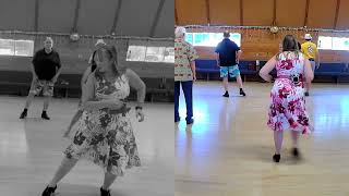 15&16“kick Right forward, step back Right, touch Left together” and restart facing 3 o’clock Wall