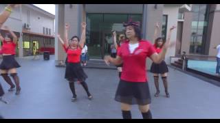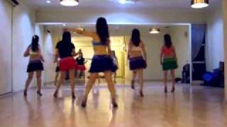 The End of the music finishes after the side switches in section 4 …… step 8 flick right behind left and look to front slapping right heel with left hand and extend right arm up Taaa Daaa!
