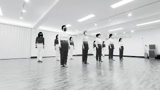 1 – 3 Bend R knee slightly pointing L to L side, drag L next to R over 2 counts (straightening R knee over counts 2-3)