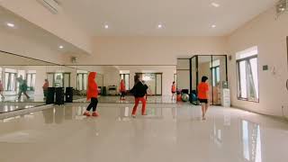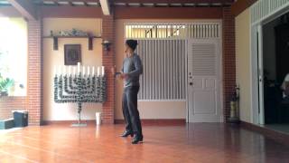 8 & aStep back R (8), make 3/8 turn left (squaring up to back wall) stepping forward L (&), step forward R (a)