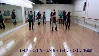 5-6Step right behind left (06:00), make ¼ turn left step left forward (03:00) 03:00