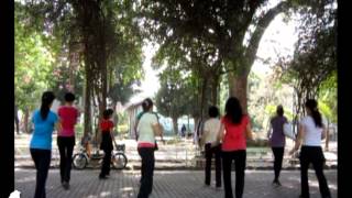 Style: when put R heel FW go slighty back with upper body and moving arms as 'gotcha move'; when point R back go with upper body slighty forward and push arms forward