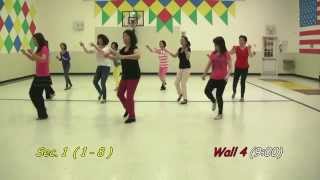 ENDING: Dance 30 counts of 9th wall (point R back) then turn1/4 R step R next to L amd clap hands.