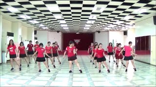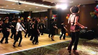 [1 – 8] Step R touch L, point L touch L, heel tap fw. L Touch L, big step L slide R