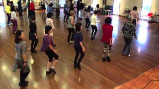 5 – 6Step R to right back diagonal, Touch L beside R (clap)