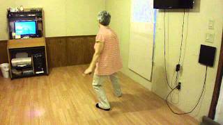 7, 8Step R to right side and swing hip to right side (7), Step L to left side and swing hip to left side (8) 3:00