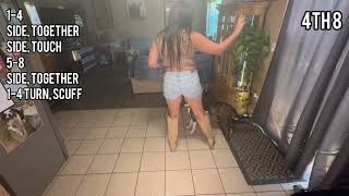 TOE STRUT, TOE STRUT, TOUCH, TOUCH, TOUCH HOLD1-2Step right toe forward, drop right heel3-4Step left toe forward, drop left heel5-6-7-8Touch right toe to side, touch right toe together, touch right toe to side, hold9-16Repeat 1-8STEP, HEEL, STEP, HEEL, STEP, HEEL, STEP, HEEL17-18Step right back, touch left heel forward (clap)19-20Step left back, touch right heel forward (clap)21-22Step right back, touch left heel forward (clap)23-24Step left back, touch right heel forward (clap)SIDE, TOGETHER, SIDE, TOUCH, SIDE, TOGETHER, TURN ¼, SCUFF25-28Step right to side, step left together, step right to side, touch left together29-32Step left to side, step right together, turn ¼ left and step left forward, scuff right togetherREPEATThis dance was choreographed especially for the newcomers who joined me in April 2007 on my second 'Dancin’ On The Water Line Dance Cruise!' They did a great job dancing it to a variety of music all week long!