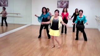Do a 4 count R rocking chair to the R diagonal then continue with count 33.