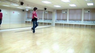 [1-8] Switch right & left, forward touch, switch left & right, behind unwind ½ turn
