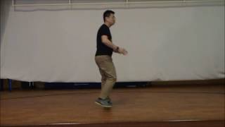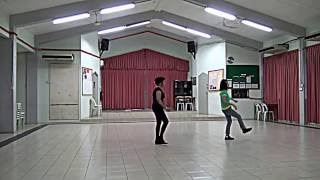 3-4Step left to left flicking right behind left, Step back on right at right diagonal touch left heel at left diagonal 9.00