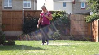 3-4Cross left over right. Sweep right out and around left.