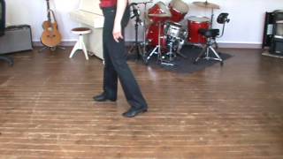 3 - 4Step fwd right and slightly to the side, brush left at side of right