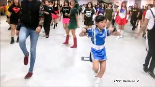 3&4Step forward on LF, Make a 1/8 turn L and step RF to R side, Close LF next to RF and pop R knee forward (now facing 10:30)
