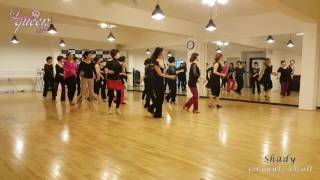 Heel, Step, Lock, Step, Step, Lock with pop, Step forward, ¾ chase turn R, Drag