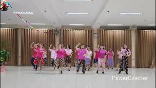 5-6-7-8Step R back, step L beside R, step R back, Hitch L knee