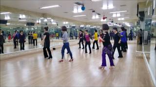 5,6,7,8Step L to L side pushing hips out to L side, push hips back, push hips out to R side, push hips round to L (weight on L) (3 o’clock)
