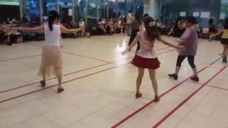 1-2-3Step fwd on L, Rock R out to R, Recover to L angling body toward L diagonal