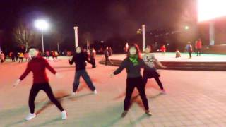 1 2Dig R heel forward with toes turned in. Grind R heel turning toes out and taking weight back on to L.