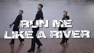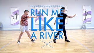 2&3Finish bodyroll backwards and start running back on R-L-R (still facing the diagonal, lean back on RF)