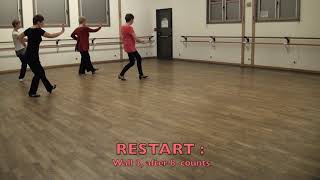 Restart: in wall 3 you dance up to count 9, and this will be count 1 of your new wall facing 12:00,