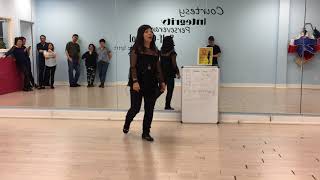 So add your arm movement and lean on count 9 to start wall 4 facing the front, so don’t start a bodyroll.