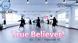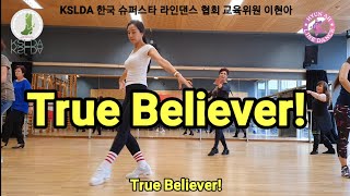 True Believer! er en 32/2 improver NC (Nightclub) linedance med et flydende og elegant flow. Dansen er musikalsk og følelsesladet, hvilket gør den oplagt til dansere, der elsker rolige og smukke koreografier.