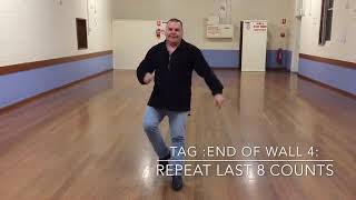 Tags:At the end of walls 2 (6:00), 4 (12:00), 7 (9:00) repeat the last 8 counts (**) of the dance,omitting the ‘&’ step.