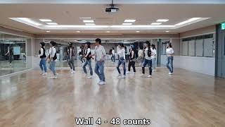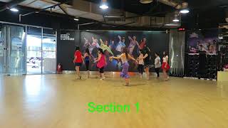 5 – 8&Step L forward (5), Step R forward (6), ½ turn L stepping L forward (7), Kick R forward (8), Step R next to L (&)