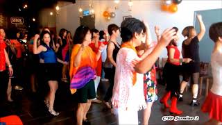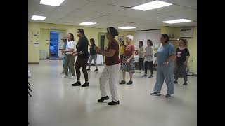 5-6Step RF to R side, Touch LF next to RF and clap hands