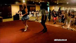 1-2Stomp fwd. left (Weight on both), swivel both heels to the left side