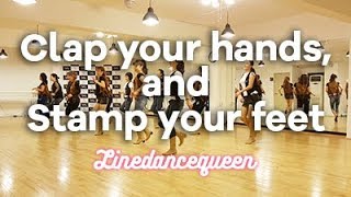 3-4Stomp fwd. on left, hold and clap your hands