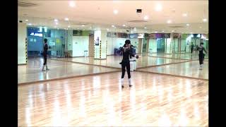 &7&8step LF out to LT – kick RT heel out to RT – step RF next to LF – cross LF over RF (6:00 wall)