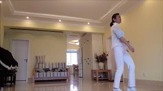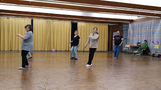 3 – 4Walk R fwd, Walk L fwd (bring R foot back to front like a small sweep)