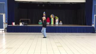 Step forward. Hold. Pivot half turn Left. Hold. Run forward x 3. Hold