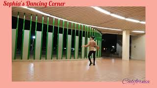[33-40] Right diagonal step, left side step, back lock back, shuffle ½ turn, step swivel turn 1/2