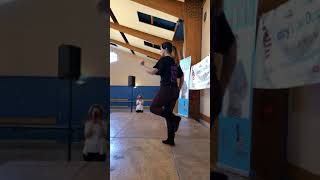 1-2Step RF fwd to R diagonal, Touch L toe beside RF and clap hands 3:00