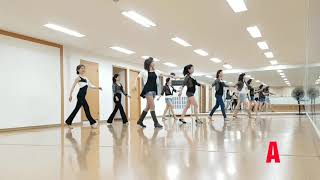 A2: Together, Cross, Side, Behind, Sweep, Behind, ¼ Forward, ¼ Drag (with heel), Together