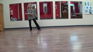 3&4(3) Step L behind R; (&) Turn 1/8 left stepping R beside L; (4) Step L forward (10:30)